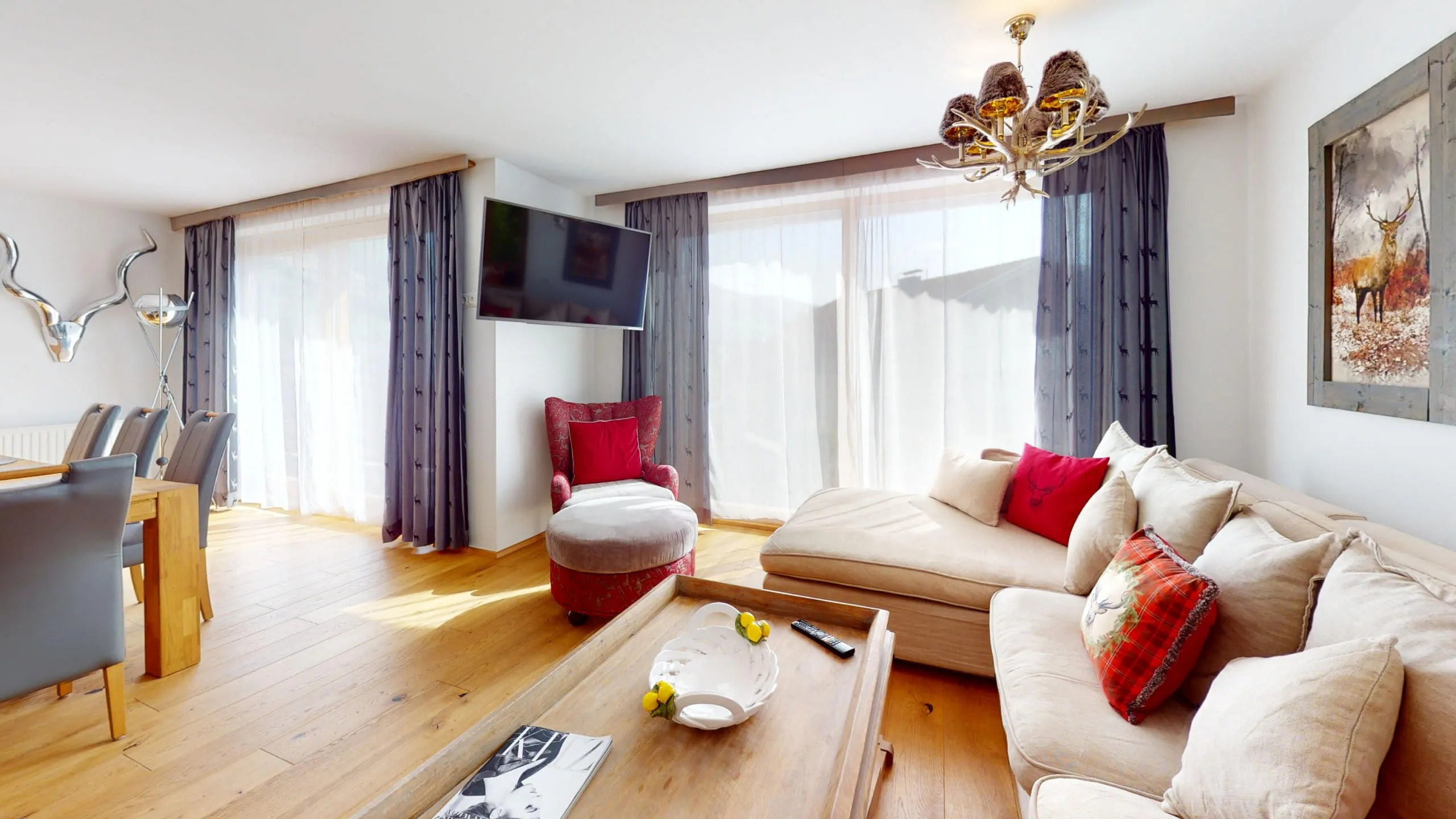 Vom schönen Balkon aus genießen Sie eine fantastische Bergaussicht. Der Skibus hält fast vor der Tür und bringt Sie innerhalb weniger Minuten in eines der größten Skigebiete Österreichs! Hinter dem Haus gibt es noch eine zusätzliche Terrasse und Sie verfügen über einen eigenen Garten mit Terrassenmöbeln. Alles in allem ein fantastisches Luxus Ferienhaus für alle.